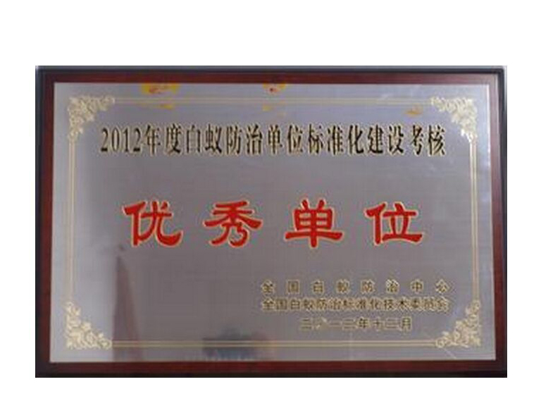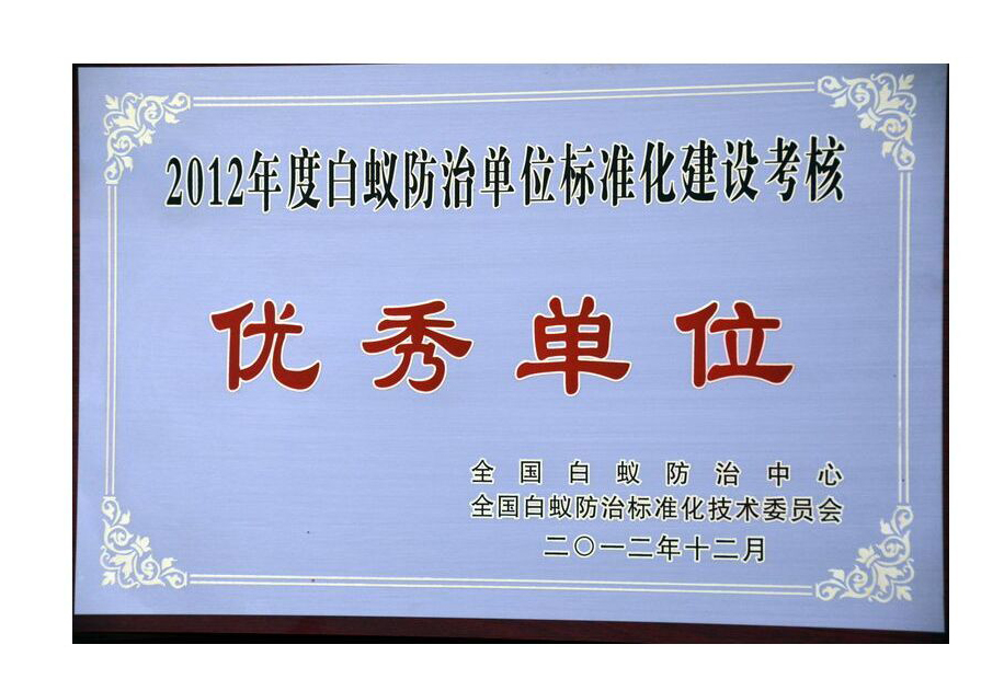 • 2012年度白蟻防治單位標準化建設考核優(yōu)秀單位